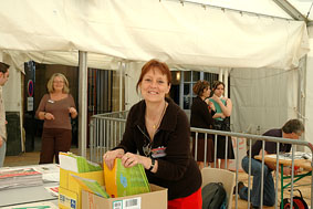 Panneaux et affiches permettent aux visiteurs de ne manquer aucun stand, ni aucun auteur, de passer par le bar, les divers ateliers, le fonds des libraires et de s'installer confortablement pour écouter les interviews et débats animés par Patricia Martin et les tables rondes des libraires.