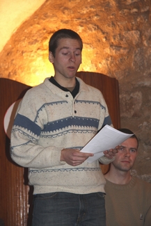 | Répétition : on fait un filage au Cellier du Chapitre. | "... Je remue trop au piano, ça se communique au bas du dos ..." Albert Cohen. |